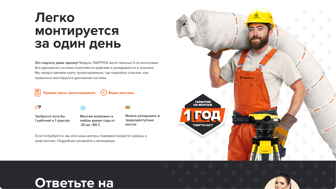 Отказались от скучного каталога в пользу продуктовой стратегии: упаковали сложные решения (дренаж, фасады) в понятные лендинги с детальной 3D-графикой. Успех пилотного запуска окупил создание большого торгового портала.